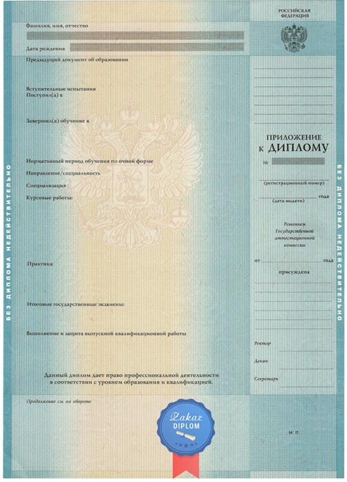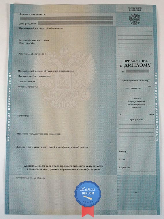 При необходимости, можно заказать дипломы специалиста (старого и нового образца), бакалавра, магистра. Кроме того, готовы предоставить дипломы, которые действовали в период с 1997 по 2008 гг., а также распечатанные на бланках Гознака корочки советских времен.